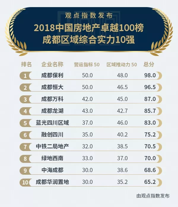 2018中國房地產(chǎn)卓越100榜成都區(qū)域綜合實(shí)力10強(qiáng)