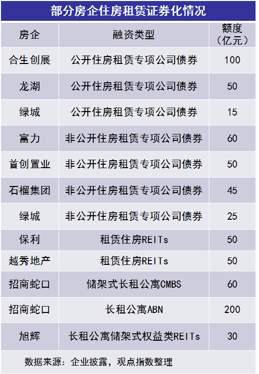 不過,住房租賃作為國家目前重點鼓勵和扶持的行業(yè),該方向的融資成為房企采取的新辦法之一。據(jù)觀點指數(shù)不完全統(tǒng)計,目前包括保利、招商蛇口、龍湖、綠城、越秀地產(chǎn)等房企均宣布發(fā)行住房租賃相應(yīng)的證券化產(chǎn)品,總額度逾700億元。