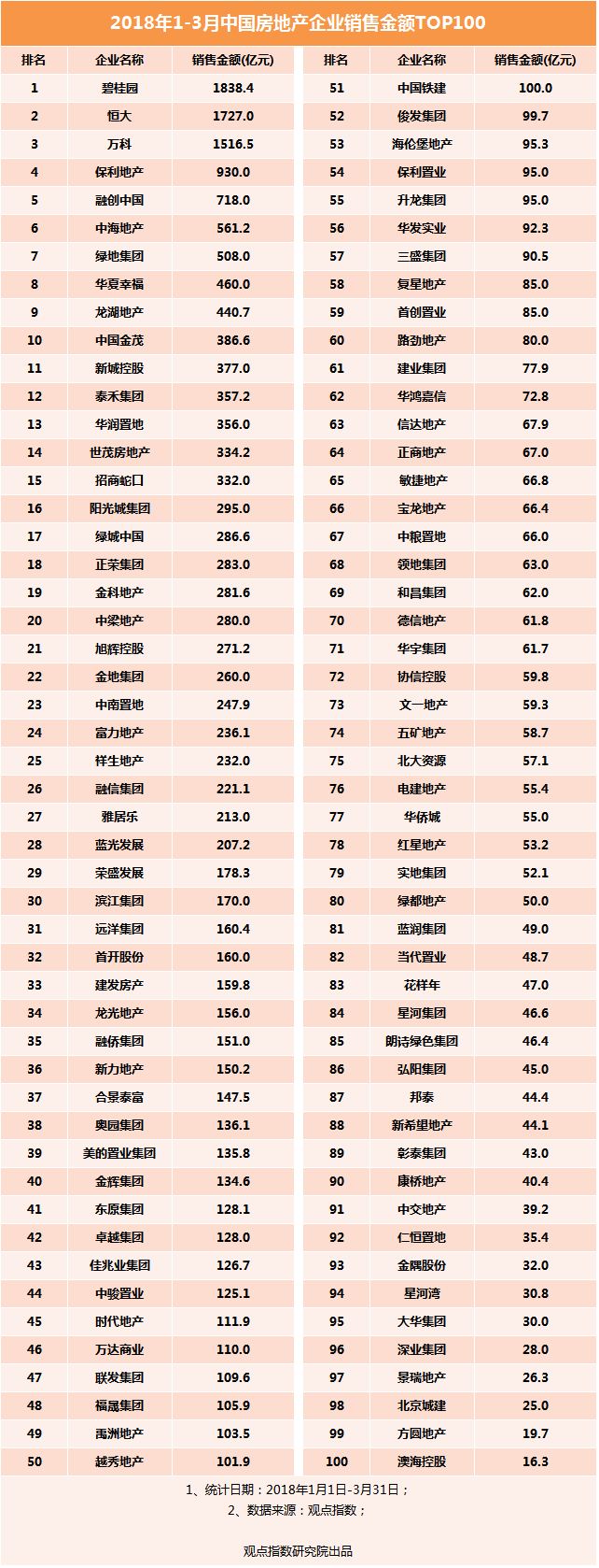 觀點指數(shù)2018年1-2月Top100榜單顯示,目前十強門檻已更新至290億,累計銷售額已經(jīng)接近100強房企的銷售總額的48%,碧恒萬銷售規(guī)模均突破千億。在3月29日融創(chuàng)業(yè)績會上,孫宏斌還預(yù)計,未來TOP5市占率將達到30%-40%。