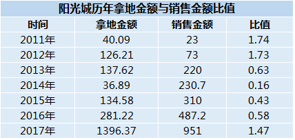 截止到2017年底,陽(yáng)光城累計(jì)總土儲(chǔ)達(dá)3796萬(wàn)平方米,儲(chǔ)備貨值4911億元。