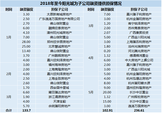 2018年,除了維持原有的融資方式外,陽(yáng)光城開(kāi)始為旗下子公司融資或貸款提供擔(dān)保。