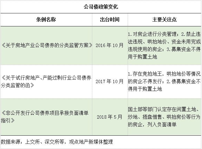 2016年10月深交所、上交所發(fā)布《關(guān)于房地產(chǎn)業(yè)公司債券的分類監(jiān)管方案》,成為房企發(fā)債監(jiān)管由松到緊的轉(zhuǎn)折點。此后兩年間,監(jiān)管層陸續(xù)出臺新規(guī),對發(fā)債的條件做進一步的限制,導致房企發(fā)債規(guī)模急劇萎縮。