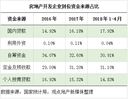 國家統(tǒng)計局數(shù)據(jù)顯示,2018年1-4月,房地產(chǎn)開發(fā)企業(yè)到位資金4.82萬億元,同比增長2.1%,增速較一季度回落1個點。按來源分,國內(nèi)貸款下降1.6%,自籌資金增長4.8%。