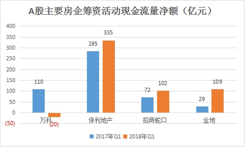 值得一提的是,從已有的房企一季度財報看,“招保萬金”四大房企大部分表現(xiàn)出經(jīng)營活動現(xiàn)金凈流量、經(jīng)營活動現(xiàn)金凈流量為負,而籌資活動凈流量為正,說明主流房企在增加對工程、地價等房地產(chǎn)項目投入,同時仍將融資至于企業(yè)戰(zhàn)略的重要位置。