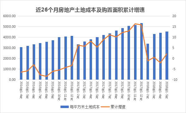 國家統(tǒng)計局公布的數(shù)據(jù)中,2018年1-5月份,房地產(chǎn)開發(fā)企業(yè)土地購置面積7742萬平方米,同比增長2.1%,1-4月份為下降2.1%;土地成交價款3522億元,增長16.0%,增速提高2.4個百分點。
