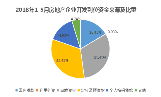 統(tǒng)計數(shù)據(jù)顯示,2018年1-5月,房企到位資金再次回升,達到62003億元,同比增長5.1%,創(chuàng)下今年以來的新高,單月增速則達到17.4%。需要關注的是,所有到位資金中定金及預收款超越國內(nèi)貸款的比重,在占比最大,達到32.45%。同時,增長速度亦是最快的,達到12.7%。