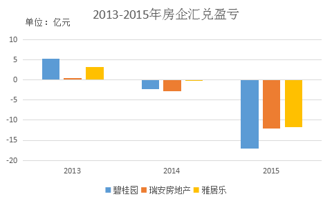 2015年8月11日人民幣匯率改革,當(dāng)天人民幣對(duì)美元匯率中間價(jià)6.1162元連續(xù)貶值3天到6.4010元,貶值幅度達(dá)4%以上。相關(guān)房企由于沒(méi)有提前準(zhǔn)備,被打了個(gè)措手不及,遭受了高額的損失,碧桂園、廣州富力、瑞安房地產(chǎn)和雅居樂(lè)的匯兌損失均超過(guò)10億元人民幣。