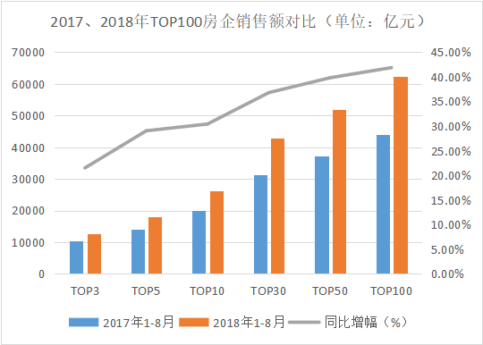 根據(jù)“觀點(diǎn)指數(shù)·2018年1-8月中國(guó)房地產(chǎn)企業(yè)銷售金額TOP100”的數(shù)據(jù)分析來(lái)看,1-8月,TOP5的起跑線超過(guò)2600億元,具體到TOP10也從去年同期的878億元上升到1316.4億元。這表明,雖然房企已經(jīng)開(kāi)始轉(zhuǎn)變發(fā)展方向,注重負(fù)債和利潤(rùn)平衡,但在經(jīng)歷過(guò)高度集中的市場(chǎng)面前,規(guī)模的“滾輪”有所放緩,但仍在前進(jìn)。
