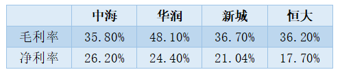 當然,中海的凈利率雖然仍然保持在行業(yè)領(lǐng)先的水平,但是無論是規(guī)模還是利潤,來自后來者的壓力都不容忽視。緊隨中海之后的新城和華潤的毛利率,也分別達到了36.7%和48.1%。其中,華潤的凈利率與中海的差距也變得越來越小。