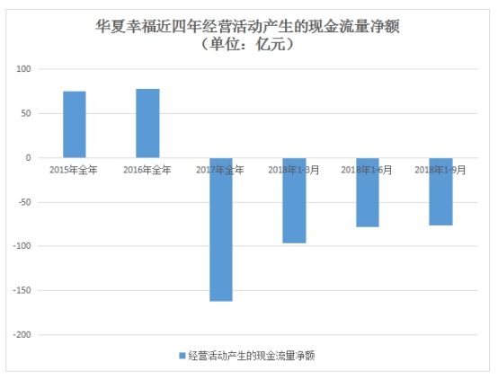 翻看華夏幸福今年以來的財務數(shù)據(jù),2018年第一季度,華夏幸福經(jīng)營活動產(chǎn)生的現(xiàn)金流量凈額仍為負值,即-96.03億元,第二季度末則為-78.18億元,第三季度末則為-76.60億元。
