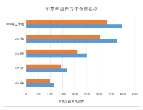 此外,從負債方面看,2014年全年,華夏幸福錄得總負債965.68億元,2015年為1429.93億元,與2014年相比增長了464.25億元,負債率為84.80%;隨后,2016年,總負債為2118.72億元;2017年,華夏幸福的總負債大增929.6億元至3048.32億元。