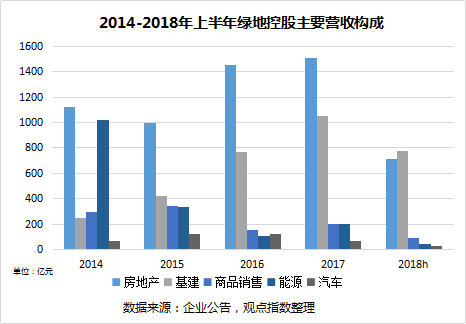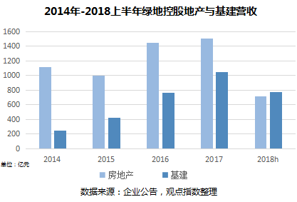 2018年三季報(bào)顯示,期內(nèi),綠地房地產(chǎn)營(yíng)收和基建業(yè)務(wù)營(yíng)收幾乎持平,分別達(dá)到1041億元和1009億元,此前的半年報(bào)中,基建的營(yíng)收甚至一度超過(guò)地產(chǎn),放在任何一家房企,這大概都是無(wú)法想象的。