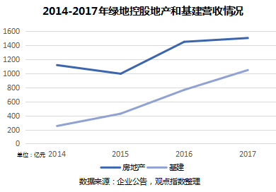 綠地年報(bào)顯示,2014年到2017年,綠地基建業(yè)務(wù)分別完成250.95億元、426.62億元、1048億元的營(yíng)業(yè)收入,年復(fù)合增長(zhǎng)率超過(guò)60%。