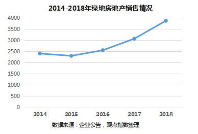 根據(jù)觀點(diǎn)指數(shù)公布的數(shù)據(jù),2018年綠地共完成銷售額3680億元,未實(shí)現(xiàn)年初4000億的目標(biāo),同比增長(zhǎng)幅度達(dá)到20%。