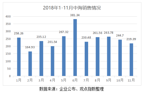 截至2018年11月30日,中海地產(chǎn)累計合約物業(yè)銷售2728.37億港元,達(dá)到全年目標(biāo)94.08%。從前11月的銷售情況來看,如無意外,完成目標(biāo)將會是大概率事件。