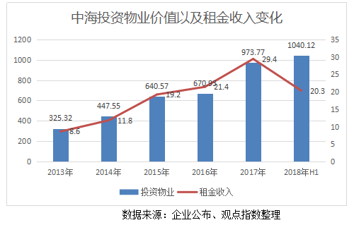 截至2018年6月份,中海商業(yè)物業(yè)租金總收入達(dá)20.3億港元,同比增長46%。其中,持有運(yùn)營寫字樓38棟,運(yùn)營面積229萬平方米,在建及尚未開發(fā)的商業(yè)物業(yè)超過556萬平方米。