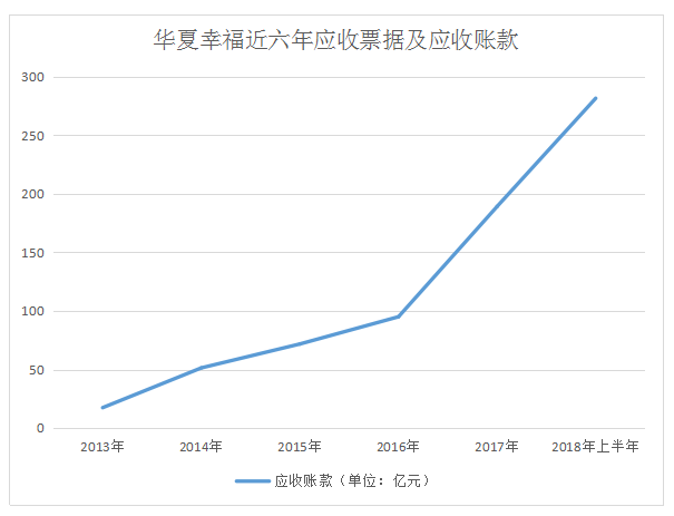 從華夏幸福的財(cái)報(bào)獲悉,2018年上半年應(yīng)收賬款為281.45億元,占總資產(chǎn)7.27%,同比上升48.84%。華夏幸福表示,應(yīng)收賬款增加主要是與政府結(jié)算園區(qū)收入所致。