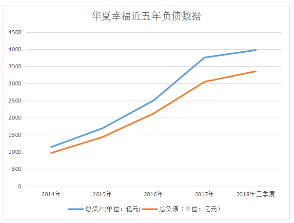 長(zhǎng)期以來(lái)靠借款“維持生計(jì)”,就導(dǎo)致華夏幸福的負(fù)債常年高居不下。2017年,華夏幸福的總負(fù)債為3048.32億元,同比增長(zhǎng)43.88%,截至2018年9月30日,總負(fù)債為3355.07億元,與年初相比增長(zhǎng)了306.75億元,負(fù)債率84.43%。