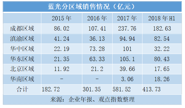 在2018年4月份的利潤分配說明會(huì)上,藍(lán)光曾預(yù)定2018年度土地投資計(jì)劃總額不超過650億元,這個(gè)數(shù)額超過了2017年全年銷售額。