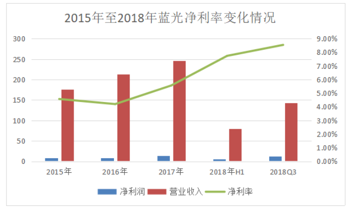 2018年前三季度,藍(lán)光實(shí)現(xiàn)營業(yè)收入142.78億元,歸屬于上市公司股東的凈利潤12.2億元,與2017年年末的6.2億相比,大增122.64%。