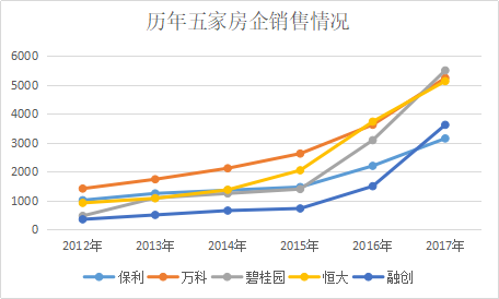 走完2017年的時候,“碧萬恒”已跨過5000億元門檻,保利則已被甩開近2000億元;對于保利自己而言,從1000億元到3000億元,這2000億元它走了5年,期間銷售增速基本都在40%以下。