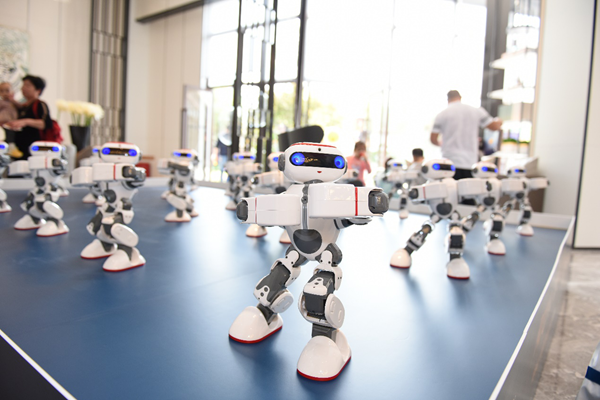 銷售中心的機器人舞蹈專區(qū),20臺機器人旋轉(zhuǎn)、跳躍,舞姿整齊劃一又靈動有趣,洋溢著未來氛圍。