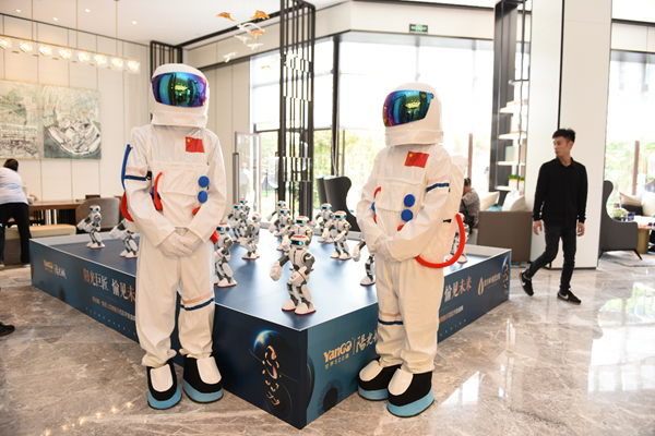 兩名未來太空人作為代表,引領(lǐng)來賓進入“未來生活體驗區(qū)”。