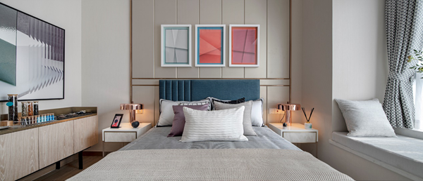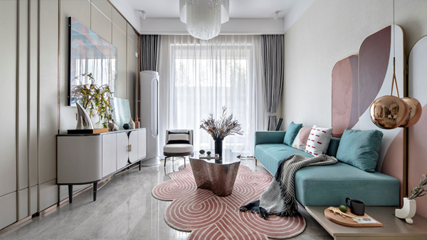 約85㎡極具美感的蒂芙尼主題裝修樣板間,開放式的空間營造出穿透感,舒適三房的大氣格局。