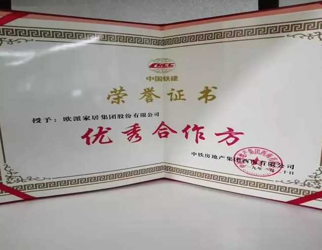 歐派家居,憑著過硬的產(chǎn)品質(zhì)量、優(yōu)質(zhì)的服務(wù)水平及快速標準的現(xiàn)場施工獲中國鐵建高度評價,斬獲“2018年度優(yōu)秀合作方”殊榮!