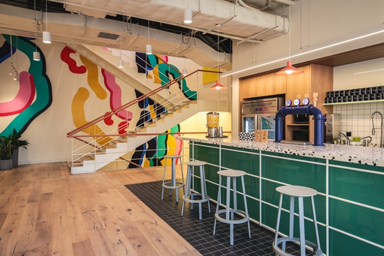 WeWork的廣州首個創(chuàng)造者社區(qū)坐落于人文氣息濃郁的老城越秀區(qū)大馬站附近,致力于聯(lián)手WeWork深圳創(chuàng)造者社區(qū),著力打造粵港澳大灣區(qū)青年創(chuàng)新創(chuàng)業(yè)基地。在這個跨越11層、提供1400個工位的社區(qū)內(nèi),WeWork設(shè)計團隊將古老越秀書院文化、南洋風情,以及廣州特有的飲茶文化與其一貫獨具匠心的設(shè)計格調(diào)相碰撞糅合,通過熱帶植物霓虹的裝點、以廣州市樹為靈感的木棉樹壁畫創(chuàng)作等標志性符號的創(chuàng)新展現(xiàn),淋漓盡致地凸顯了在地文化的豐富層次;而木質(zhì)書架以及地毯和織物面料的大量使用,更意在為本地創(chuàng)造者打造出“談笑有鴻儒,往來無白丁”的茶香書香四溢社群,竭力賦活老城區(qū)以新生機。貫穿4層的旋轉(zhuǎn)樓梯采用鏤空造型,不僅讓會員在辦公之余可直接享受南方暖陽的灑入,更旨在搭建成為不同樓層會員間的交流溝通平臺,營造充滿活力的社區(qū)氛圍,賦予本地創(chuàng)造者更多創(chuàng)新靈感迸發(fā)協(xié)作的機會,全力打造具有廣州特色的國際人才新高地,竭力推動廣州經(jīng)濟的高質(zhì)量發(fā)展。