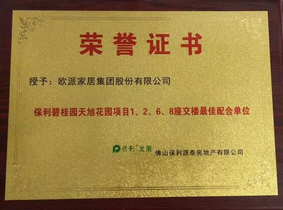 7、喜訊!歐派家居榮膺保利發(fā)展最佳配合單位及優(yōu)秀合作單位!