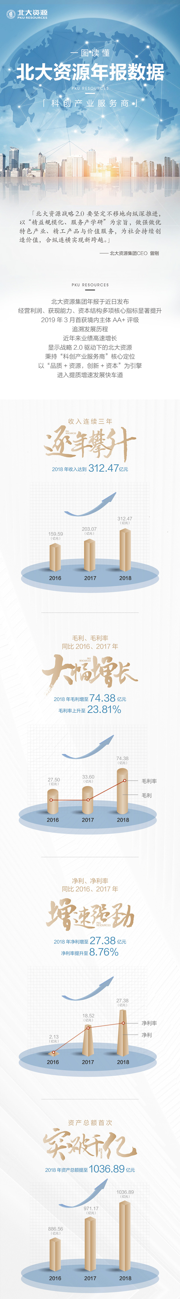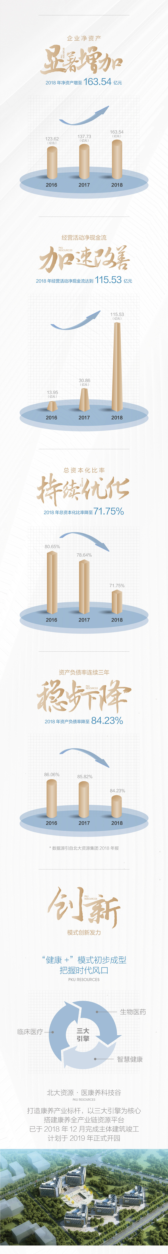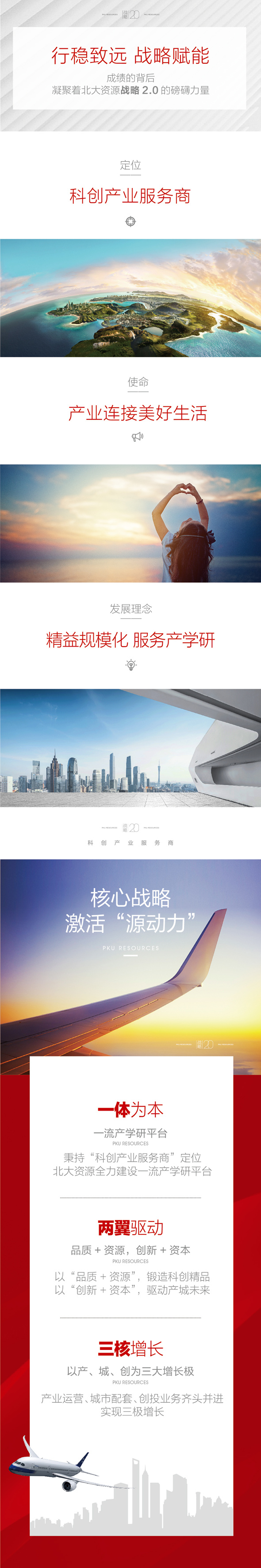 追溯發(fā)展歷史,北大資源接連實現(xiàn)歷史性的業(yè)績突破,得益于清晰的戰(zhàn)略引領(lǐng)和精準的戰(zhàn)術(shù)實踐。2018年,北大資源進行戰(zhàn)略2.0全新升級,定位“科創(chuàng)產(chǎn)業(yè)服務(wù)商”,以“產(chǎn)學(xué)研一體化”為核心,以“品質(zhì)+資源”、“創(chuàng)新+資本”雙引擎為驅(qū)動,確立“精益管理化、服務(wù)產(chǎn)學(xué)研”的發(fā)展理念,深入完善產(chǎn)城融合發(fā)展模式,合縱連橫,推動企業(yè)跨越式發(fā)展。