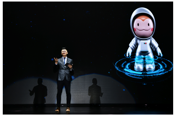 碧桂園佛肇區(qū)域營銷副總經(jīng)理劉甘雄與碧桂園首席快樂官“P仔”智能互動