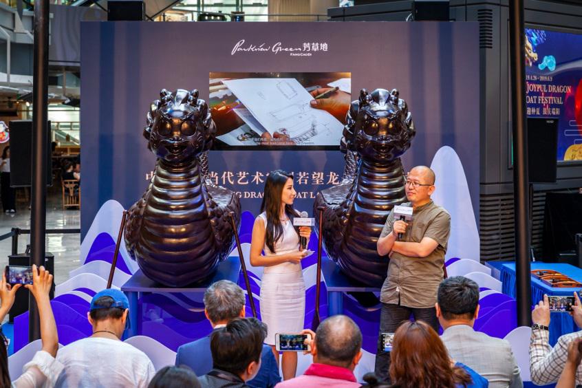 在北京僑福芳草地極具現(xiàn)代藝術(shù)設(shè)計感的建筑內(nèi),空前上演由公共藝術(shù)文化創(chuàng)作概念而演變的一系列空間美學(xué)與當(dāng)代藝術(shù)的碰撞。此次端午特別藝術(shù)創(chuàng)作,是由僑福芳草地提出以中國傳統(tǒng)端午節(jié)文化元素“端午龍舟”為靈感,透過中國著名當(dāng)代藝術(shù)家劉若望老師的藝術(shù)表達(dá),將藝術(shù)作品兼具觀賞性和使用性,呈現(xiàn)出極具東方魅力的端午特別公共藝術(shù),并在公共商業(yè)空間向公眾呈現(xiàn)。