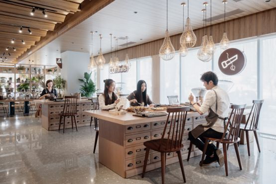 在場(chǎng)景搭建和空間布局上,四季都會(huì)篩選了花店、烘焙區(qū)、咖啡區(qū)、手工教室、演講區(qū)、展覽區(qū)、兒童區(qū)七大主題模塊,再疊加項(xiàng)目規(guī)劃展示及美好生活研究所,通過設(shè)計(jì)的表達(dá),營(yíng)造和展示出屬于四季都會(huì)的文化基因和生活理念。