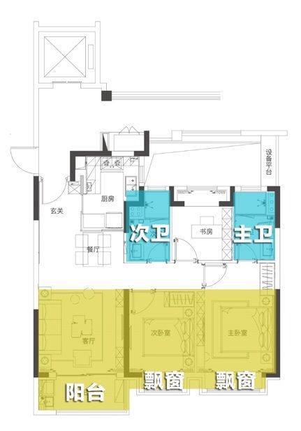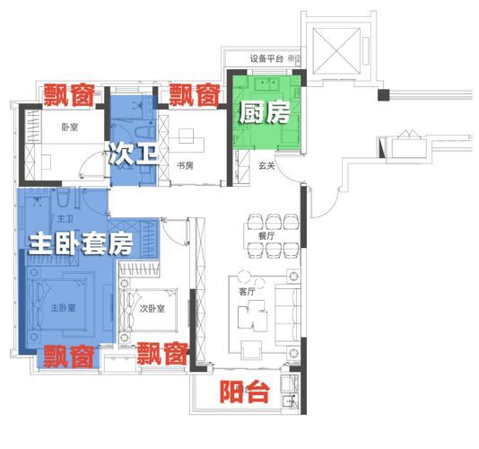 項(xiàng)目主推建面約95平方米3房2廳2衛(wèi),動(dòng)靜分區(qū)。餐廳連接開放式廚房和大面寬客廳,南側(cè)則是大陽臺(tái);主臥、次臥雙臥朝南,主臥為套房格局,自帶獨(dú)立衛(wèi)生間;跟常見的90戶型比,這個(gè)建面約95平方米戶型多一個(gè)衛(wèi)生間,空間利用率更高。次衛(wèi)位于客廳和次臥、書房當(dāng)中,起居方便。