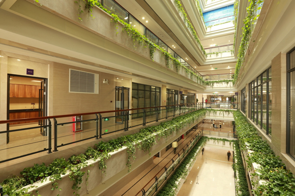 作為佛山順德的地標(biāo)性建筑,碧桂園總部辦公大樓是一棟以綠色生態(tài)為設(shè)計(jì)主題,通過(guò)錯(cuò)落有致的綠化陽(yáng)臺(tái)以及主入口森林走廊的營(yíng)造,精心打造的綠色節(jié)能生態(tài)辦公建筑。綠色管理思路在這棟生態(tài)辦公大樓里得到體現(xiàn)。其中,建筑自遮陽(yáng)及節(jié)能門(mén)窗設(shè)計(jì)是一大亮點(diǎn)。錯(cuò)落有致布滿(mǎn)綠植的陽(yáng)臺(tái)將直射陽(yáng)光轉(zhuǎn)化為漫射光,搭配高透光Low-E中空玻璃,在阻擋太陽(yáng)光輻射熱的同時(shí),保留可見(jiàn)光波段進(jìn)入室內(nèi),有效降低室內(nèi)空調(diào)與照明能耗。