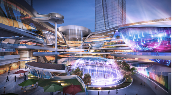 在這座天空之城的最高點(diǎn)上,規(guī)劃建成全球首個(gè)阻尼器觀光平臺,通過塔樓頂部提供動(dòng)能的阻尼器與全息投影結(jié)合的前沿科技結(jié)合方式,打造一個(gè)高科技的超感官觀光平臺。未來這里將成為奢侈品年度大秀、燈光秀、極限挑戰(zhàn)等各種前沿娛樂體驗(yàn)的首選之地。