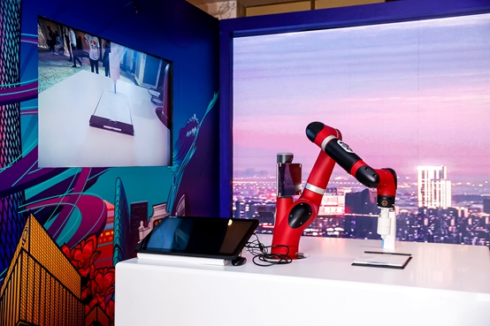 機械臂身后,LED屏幕上美輪美奐的珠江夜景布滿整個大落地窗,讓嘉賓彷如置身廣州之夜的云山珠水。