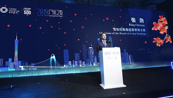 此次“廣州之夜”的主辦方雪松控股即是廣州本土民營企業(yè)代表。公開資料顯示,雪松控股旗下?lián)碛写笞谏唐?、化工新材料、旅游文化和智慧城市服務等產(chǎn)業(yè)板塊,同時擁有齊翔騰達(002408)、希努爾(002485)兩家A股上市公司,并控股雪松國際信托(原名中江信托)。2018年,雪松控股位列《財富》世界500強第361位。