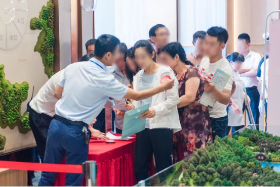 開盤當(dāng)天現(xiàn)場如火如荼,前來看房、購房的客戶接踵而至,不斷擠進(jìn)銷售中心。早上7點,不少客戶就按捺不住激動的內(nèi)心,早早地就已經(jīng)前來等候開盤。9點10分客戶正式落座,準(zhǔn)備開始搖號選房。營銷中心洽談區(qū)座無虛席,客戶們互相談?wù)撝约盒膬x的戶型,臉上都洋溢著喜悅的笑容,憧憬著未來生活的美好。