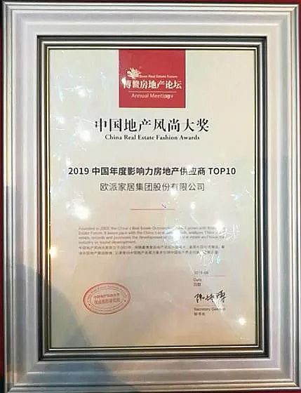定制家居行業(yè)唯一丨歐派家居集團入圍博鰲房地產(chǎn)論壇“2019中國年度影響力房地產(chǎn)供應商TOP10”