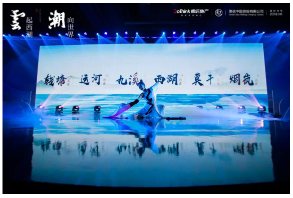 現(xiàn)場(chǎng)以極具視覺沖擊力的舞美設(shè)計(jì),既能流溢出山水的意境又能營(yíng)造連接未來(lái)的空間感。在繁華的城市中相擁山水秘境,共鑒東方與國(guó)際、傳統(tǒng)與未來(lái)的光影流轉(zhuǎn)。震撼的「燈光秀」開場(chǎng),讓全場(chǎng)快速沉浸于凌駕時(shí)空的濃烈氛圍之中。而后融合了戲曲、芭蕾、現(xiàn)代舞開場(chǎng)秀更是用意深遠(yuǎn),傳遞著德信將傳統(tǒng)、極致、潮尚多元文化凝萃一身的發(fā)展之道和企業(yè)哲思。
