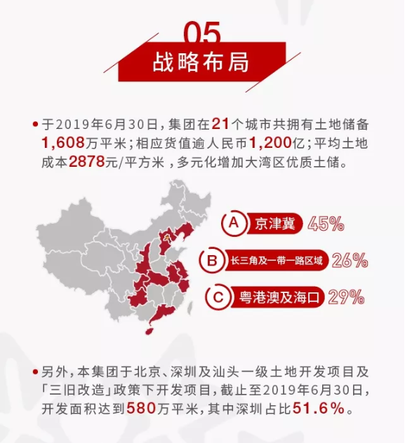 2019年上半年,本集團(tuán)積極應(yīng)對新的市場環(huán)境,繼續(xù)聚焦主業(yè),同時積極拓展城市更新及「三舊改造」項目,推動「地產(chǎn)+科技」戰(zhàn)略成為集團(tuán)新的驅(qū)動力。