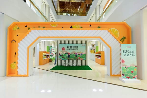筑夢(mèng)田園公益展現(xiàn)場(chǎng),主辦方在供銷e社訂購(gòu)了扶貧地區(qū)的水果產(chǎn)品,并通過(guò)彩繪涂鴉墻、水果語(yǔ)錄墻、水果自白詩(shī)等多個(gè)創(chuàng)意裝置,全方位介紹了萬(wàn)科公益扶貧項(xiàng)目的內(nèi)容。活動(dòng)期間,很多商場(chǎng)顧客走進(jìn)展區(qū)體驗(yàn),并在手機(jī)上掃碼下單購(gòu)買產(chǎn)區(qū)水果,支持扶貧產(chǎn)業(yè)。