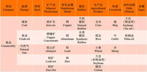 以中國大宗商品價格指數(shù)為例,包括以下類別,總共9大類26種商品