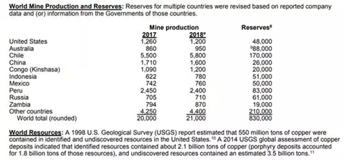 數(shù)據(jù)來自美國地質(zhì)勘探局的《礦產(chǎn)資源摘要2019》