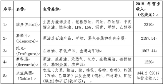 國際上,從事大宗商品供應(yīng)鏈服務(wù)的最為著名公司就是瑞士嘉能可、瑞士摩科瑞、新加坡托克集團、瑞士維多,英國來寶五家知名企業(yè),他們從事的主要大宗商品是:石油及其衍生品,金屬,礦產(chǎn)三大項,來寶集團還涉及到農(nóng)產(chǎn)品。