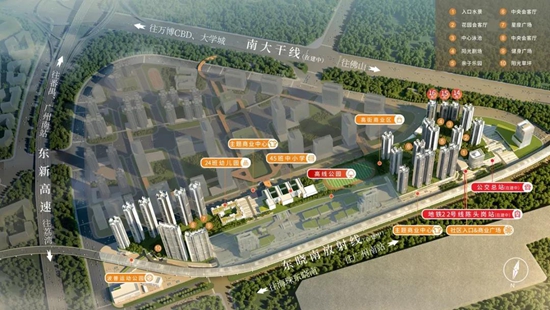 而且,項目所在的位置,原本就毗鄰地鐵6號線及超1000畝的植樹公園,蘿崗奧園廣場、銳豐廣場商業(yè)中心也均在其左右。