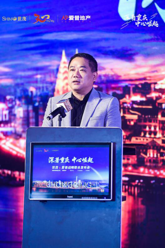 發(fā)布會上,愛普地產(chǎn)集團董事長劉杰先生登臺致辭,訴說了愛普與重慶的深厚淵源,同時表達了對愛普與世茂對未來規(guī)劃與前景展望。